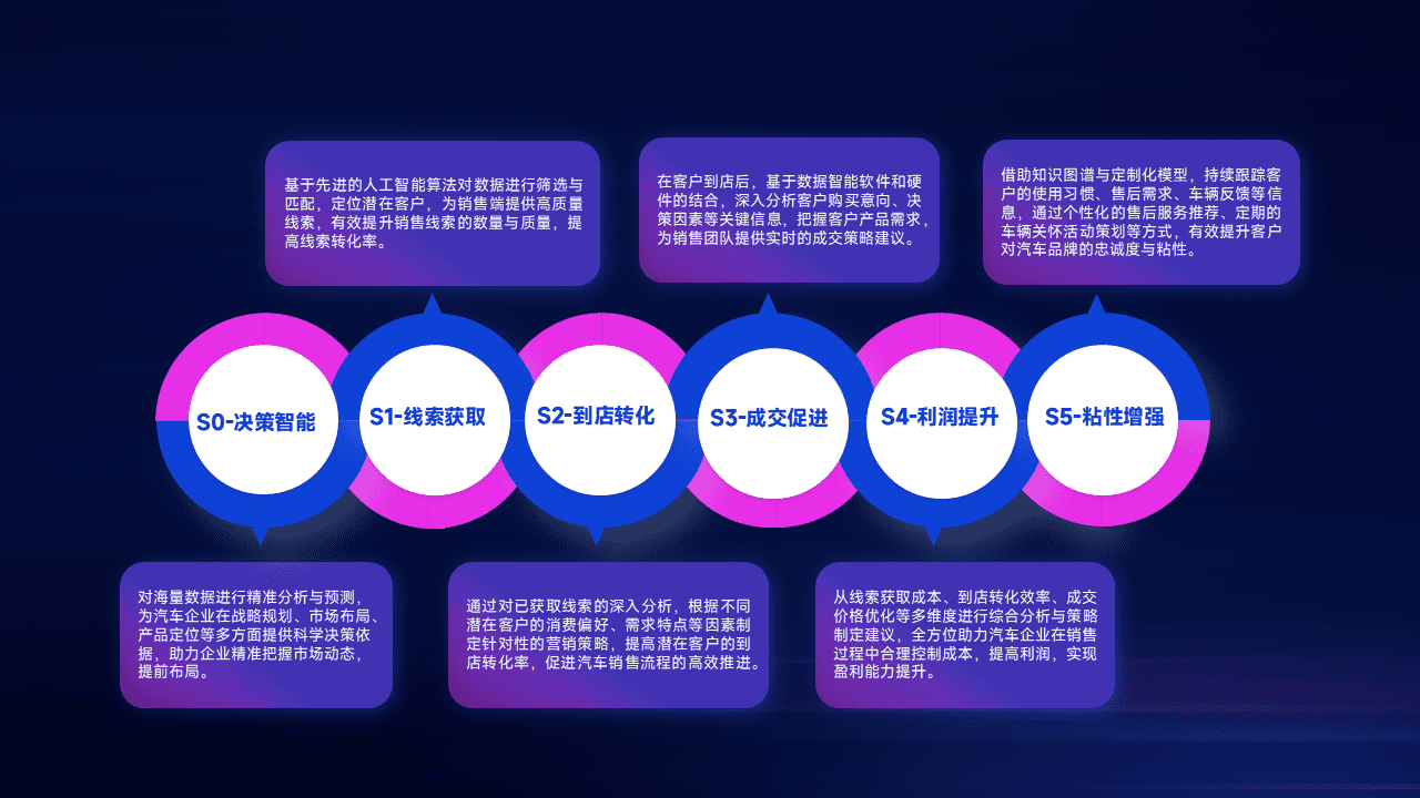 通过拓宽潜在客户来源、、优化线索分配并提高到店转化率,,,以增强销售效率。。同时,,,,利用线索数据不断优化分析模型,,,,有效提升转化率,,,,扩大营销影响力。。。。